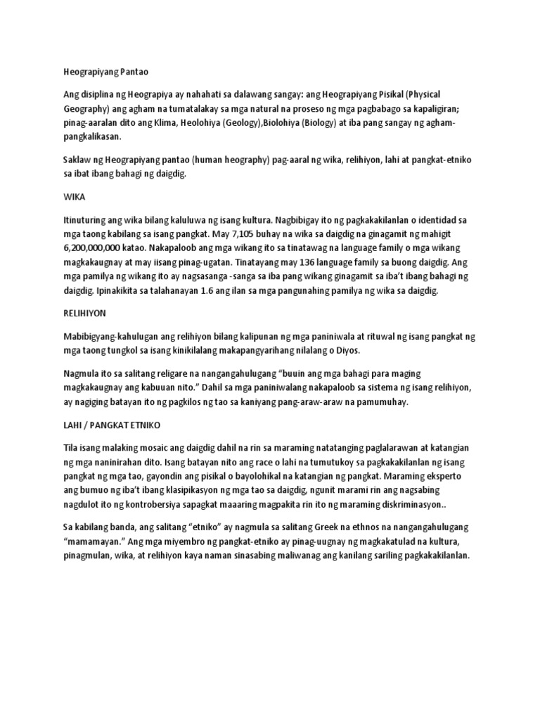 Ano ang ibig sabihin ng heograpiyang pantao. Kung may nais ka pang idagdag o nais baguhin i-comment mo lamang ito sa ibaba. Heograpiyang Pantao Learning Module 1 2.