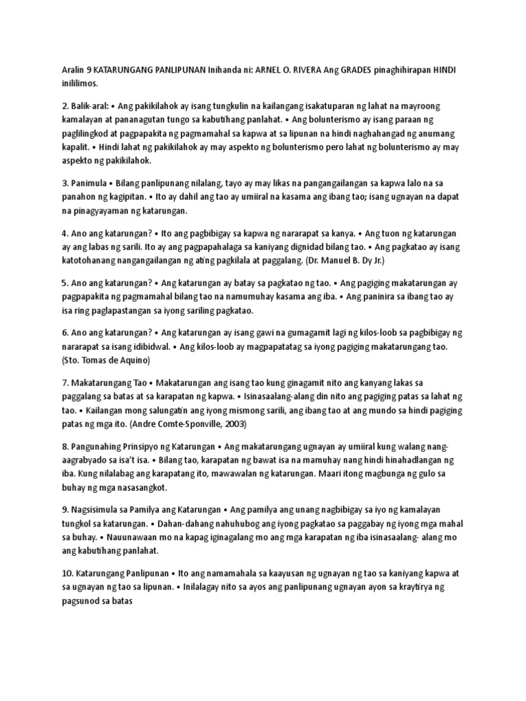 Dagdag pa niya kinakailangan na salungatin ng tao ang kanyang sarili ang ibang tao at ang mundo kung ang mga yaon ay hindi patas. Itinatalaga mo ang iyong sarili para rito sa kabila ng napakaraming hindi patas na sitwasyon na. Scribd is the worlds largest social reading and publishing site.